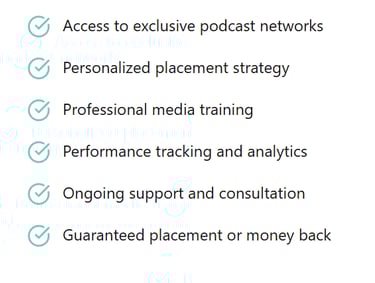 We're not just a booking agency. We're your strategic partner in building thought leadership and expanding your brand's reach through the power of podcasting.